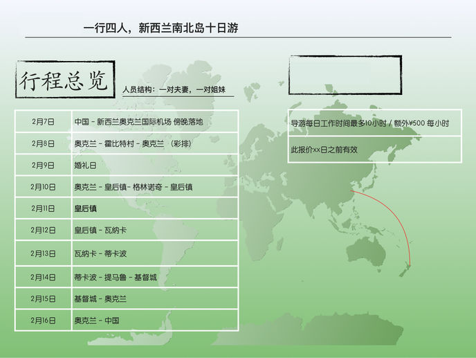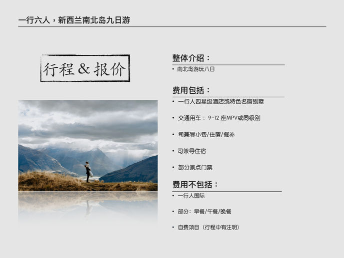 如果您想要省去行程安排的麻烦,可以选择从国内的旅行社购买新西兰跟团游的套餐。这种方式通常包括往返机票、签证、酒店住宿、交通、导游服务以及一些主要景点的门票和餐饮。您可以根据自己的时间和预算选择不同类型的跟团游,如经典景点游、探险游或文化游。